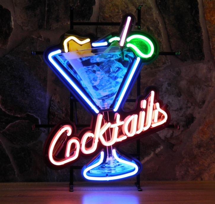 Cocktail Glas Neon mit Rückenschild