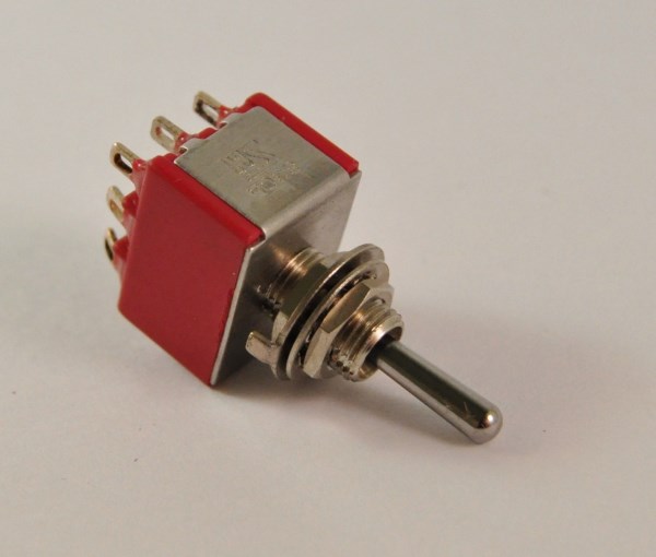Miniatuur tuimelschakelaar 3 polig om - aan/uit/(aan) - 8305 - soldeeroogjes