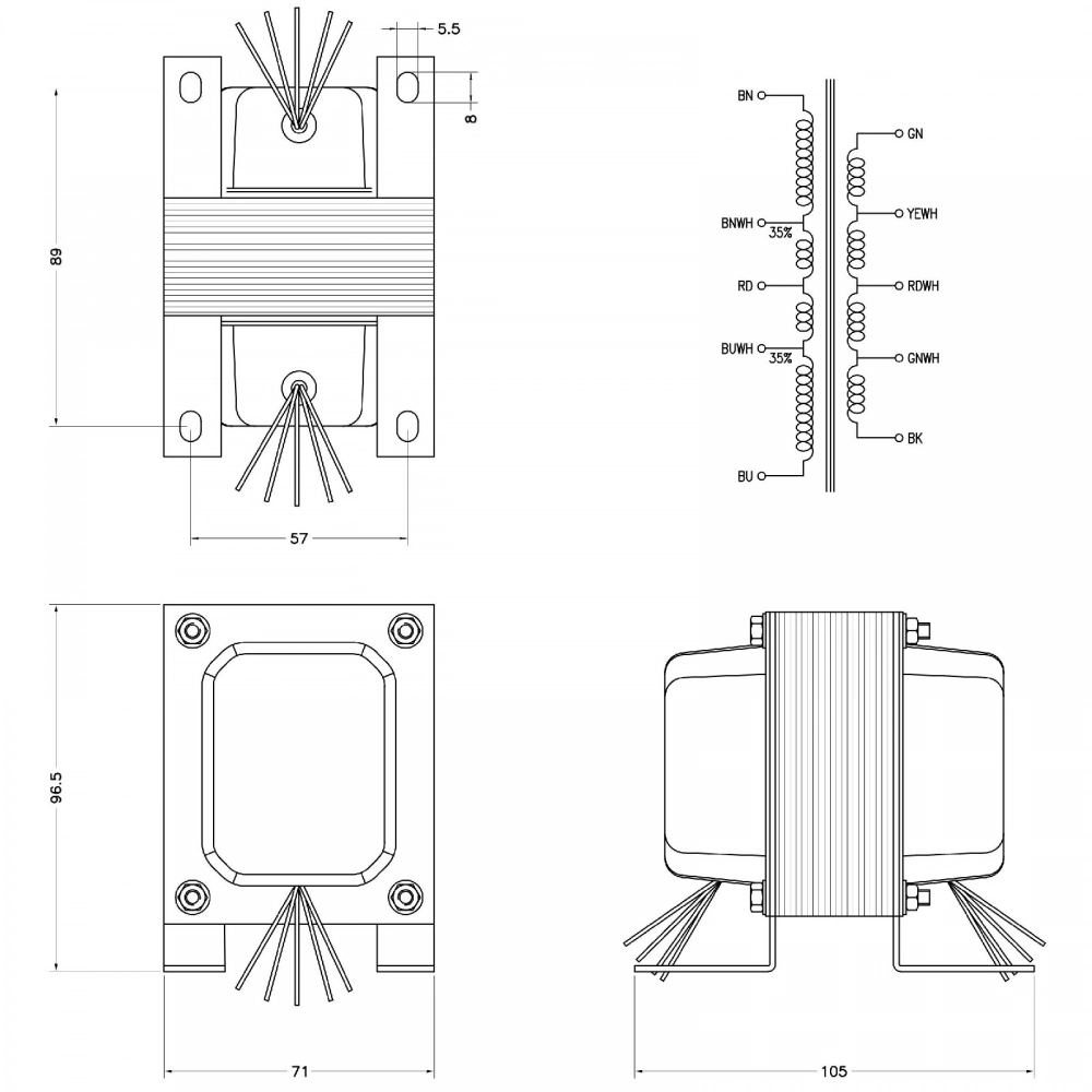 1 op 1 vervanger voor de uitgangstrafo van de R145 versterker uit de AMI G, H, I, en J (soms ook in de K en Continental)