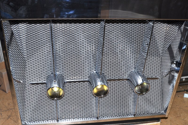Nieuwe reproductie grille van aluminium. Mazen zijn iets ruimer dan de originele maar is nauwelijks zichtbaar na montage (zie foto).