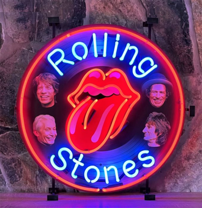 Rolling Stones LP neon met achterbord