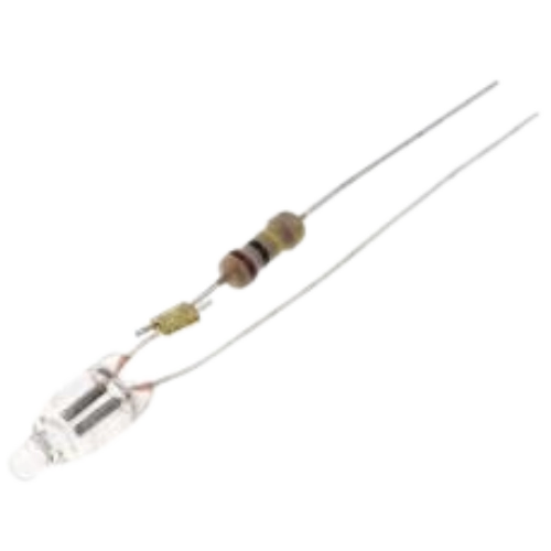 Oranje neon lampje met voorschakelweerstand voor 230 Volt.